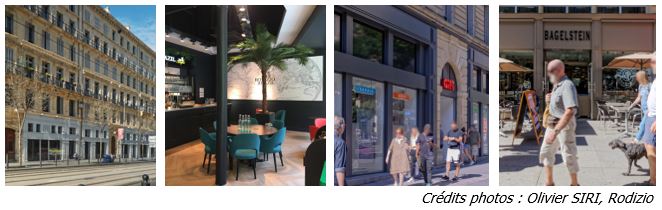 - Le Restaurant « Rodizio Brazil » a ouvert en mai 2021 et propose des spécialités de viandes brésiliennes à volonté dans un cadre moderne coloré ; d’autres offres de restauration telles que Burger de Papa, Barbot ou Pizza Five complètent la rue ;